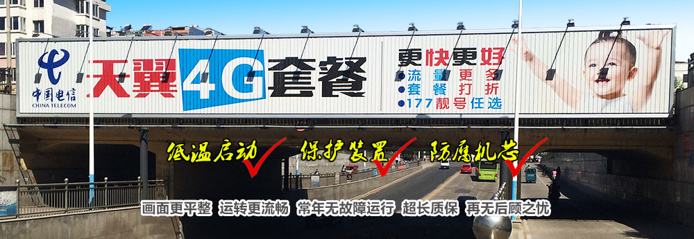 新廣通三翻轉(zhuǎn)廣告牌,通電即用,無需任何培訓(xùn)。sf-n型無需任何維護(hù),sf-h型三面翻廣告牌需對(duì)十字聯(lián)軸器注油保養(yǎng),周期為1-2年1次。新廣通三面翻廣告牌為節(jié)能產(chǎn)品,每臺(tái)電機(jī)僅90w,一臺(tái)電機(jī)可以驅(qū)動(dòng)40延長米。設(shè)備只在運(yùn)轉(zhuǎn)時(shí)耗電,畫面靜止時(shí)不耗電。以35米×10米廣告牌為例,每15秒翻轉(zhuǎn)一次,每天工作15小時(shí),日耗電量小于1度。照明設(shè)施耗電量較大,通常在北方安裝的三面翻廣告牌的年平均照明時(shí)間為4小時(shí)/天。三面翻廣告牌價(jià)格
