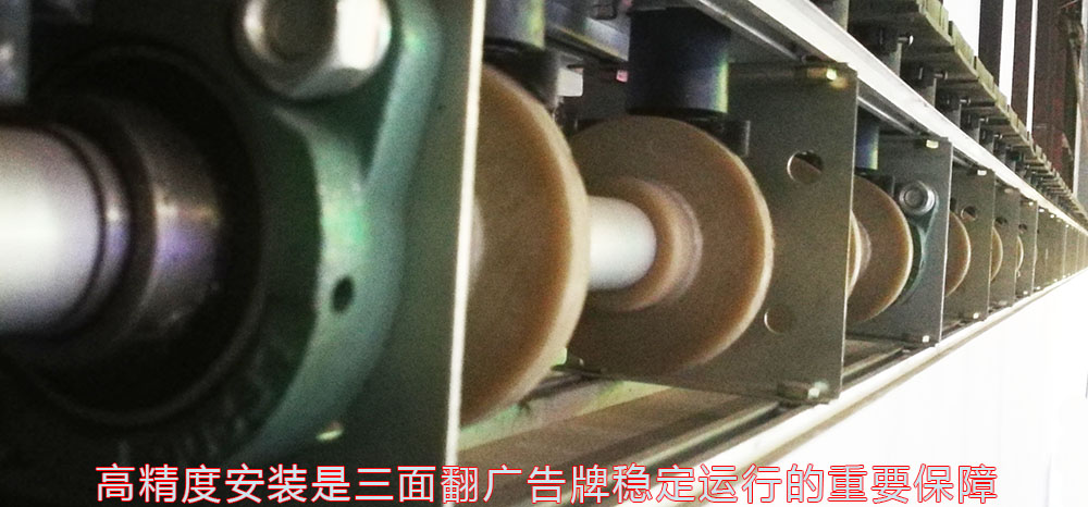 沈陽新廣通三面翻廣告有限公司,多年三面翻廣告牌制作安裝經(jīng)驗(yàn),為客戶提供良好的產(chǎn)品體驗(yàn)。電動(dòng)自控三面翻轉(zhuǎn)廣告牌又稱三翻轉(zhuǎn)廣告牌、自動(dòng)翻轉(zhuǎn)廣告牌、三翻板廣告牌、三面翻廣告機(jī)。為了設(shè)備的穩(wěn)定運(yùn)行,執(zhí)著的新廣通員工付出了無數(shù)艱辛。沈陽新廣通三面翻廣告有限公司掌握高精度三面翻組裝工藝和現(xiàn)場安裝技術(shù),單電機(jī)驅(qū)動(dòng)長度高達(dá)42米,常年使用運(yùn)行如新。
